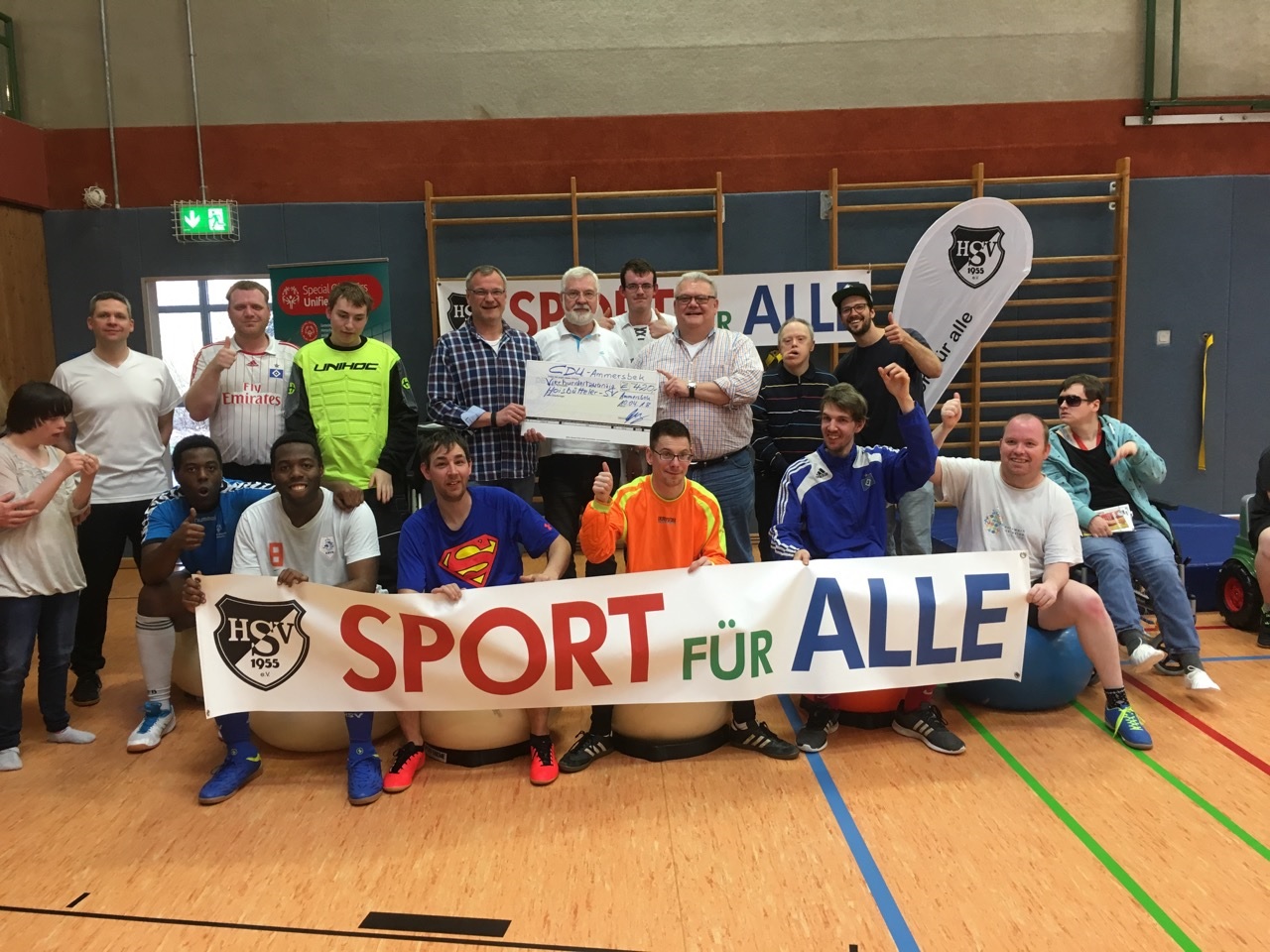 Die CDU Ammersbek hat 420 Euro an die Integrationssportgruppe des Hoisbütteler Sportvereins gespendet. Der CDU-Vorsitzende Bernd A. Sutter und sein Stellvertreter Heiko Steenhagen überreichten in der Sporthalle der Grundschule Hoisbüttel einen Scheck an Christian Schirrmacher, den Gründer der Integrationssportgruppe im Hoisbütteler SV. Das Geld ist bestimmt für die Teilnahme von Sportlern an den Special Olympics, die in diesem Jahr vom 14. bis 18. Mai in Kiel stattfinden.