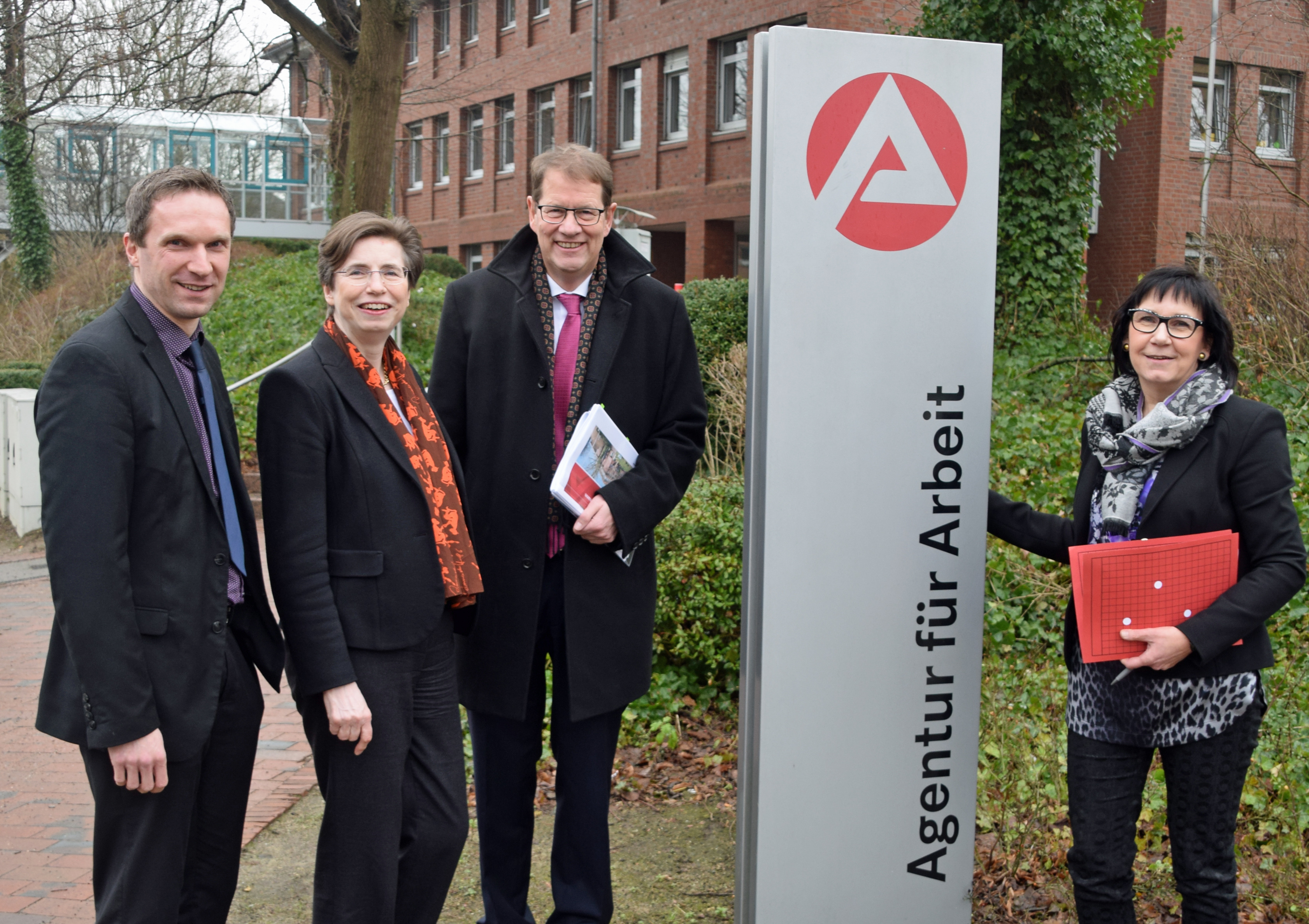 Nachdem immer mehr Flüchtlinge ihre Anerkennung erhalten, geht es jetzt verstärkt darum, diese in den Arbeitsmarkt zu integrieren. Problematisch erweist sich dabei, dass von den ca. aktuell 1.780 Schutzsuchenden 85 % Prozent keine Ausbildung und rund 56 Prozent keinen Schulabschluss mitbringen. Durch Sprachförderung, Berufspraktika, Messen, Patenschaften und in Zusammenarbeit mit Organisationen wie der Kreishandwerkerschaft und mit dem Kreisprojekt „Rückenwind“ sind die Bad Oldesloer Arbeitsagentur, das Jobcenter und ihre Partner auf diesem Gebiet aktiv.